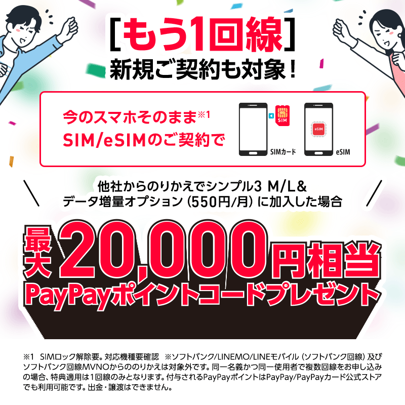 シンプル3 Sは対象外。 PayPayカード ゴールド年会費11,000円要。 通話料・端末代別途要
