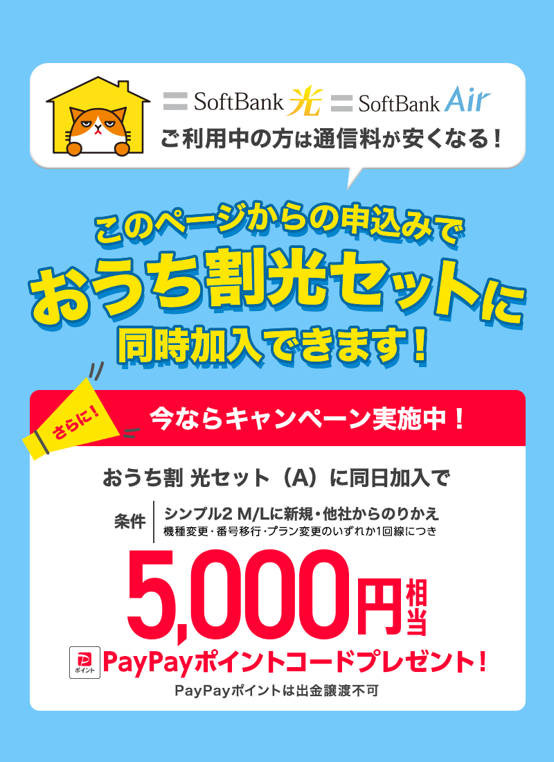 SoftBank Air加入例 5,368円/月。家族割引等併用不可。 おうち割 光セット(A)等併用不可。