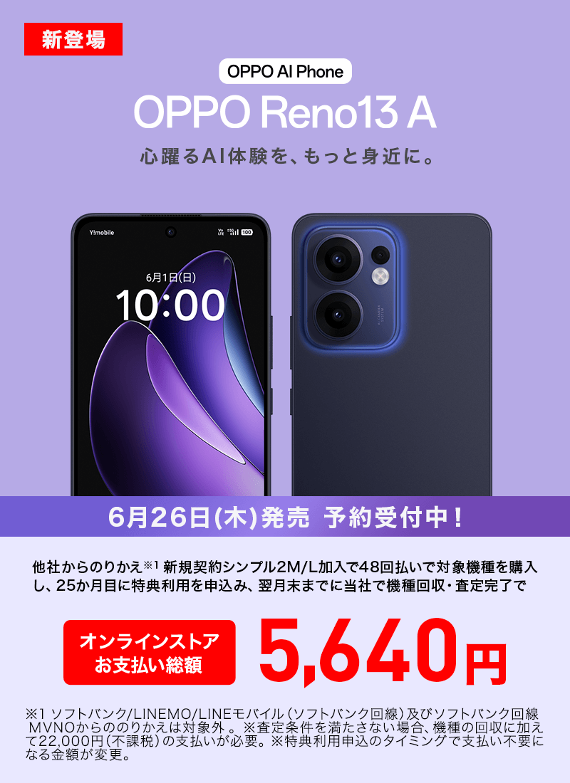 契約事務手数料(店頭:4,950円 オンライン:3,850円)がかかります。