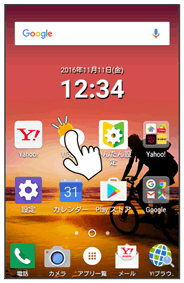 画面に軽く触れて、すぐに指を離します。
