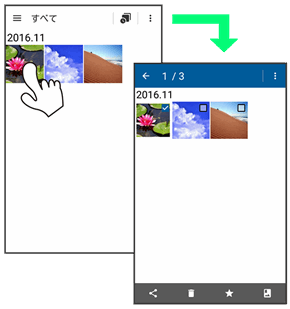 画面に軽く触れたまま、しばらくそのままにしておきます。画面が切り替われば指を離します。