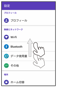画面に軽く触れて、上下左右に指を軽くはじきます。