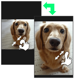 2本の指で画面に触れ、指を開いたり閉じたりします。