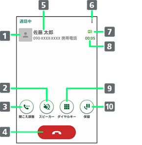 通話中は、アイコンをタップすることにより、次の機能が利用できます。