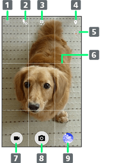 画面を右にフリックすると、設定メニューを表示してカメラモードの切り替え/設定ができます。