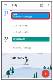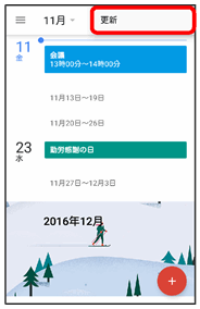 カレンダーを利用してスケジュール管理ができます。インターネット上のGoogleカレンダーと同期することもできます。あらかじめGoogle アカウントでログインしておいてください。