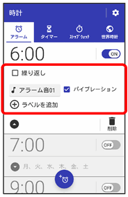 アラーム設定時刻になると、アラーム音や振動でお知らせします。