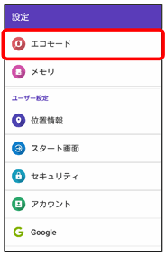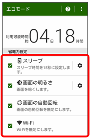 バックライト消灯時間や画面の明るさを調整して、電池の消耗を抑えます。
