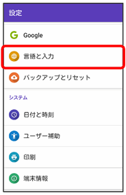 | Google音声入力 | Google音声入力に関する設定をします。 | |