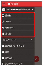 - 受信箱/下書き/送信済み/ゴミ箱