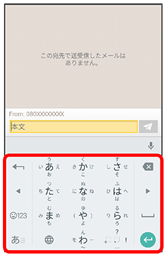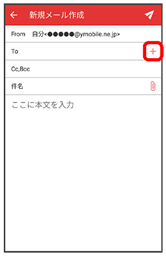 - 宛先を入力するをタップすると、宛先を直接入力できます。また、入力した宛先を電話帳に登録することもできます。