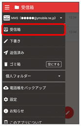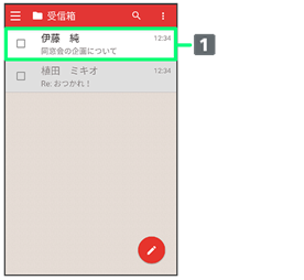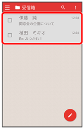 - 受信箱画面でメールの