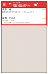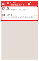 - 電話帳に登録済みの相手とのメールを確認するときは、電話帳登録済みをタップします。