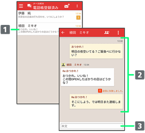 会話型表示では、宛先ごとに送受信したメールをまとめて表示します。たとえば、植田さんとやりとりしたメールを確認するときは、1つのスレッドの中で植田さんと会話をしているように表示されます。