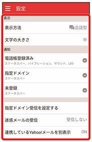 | 連携しているYahoo!メールを別表示 | Y!mobile メールと連携しているYahoo!メールを個別に表示させるかどうかを設定します。 | |