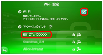 お買い上げ時のWi-Fi名は、「601ZTa-」または「601ZTb-」で始まる英数字です。