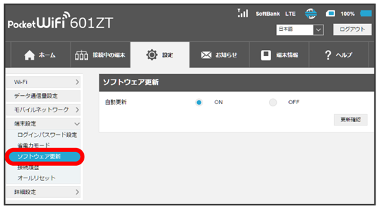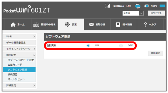 ソフトウェア自動更新機能のON/OFFが切り替わります。