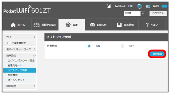 最新のソフトウェアを確認します。最新のソフトウェアがある場合はソフトウェアが更新されます。