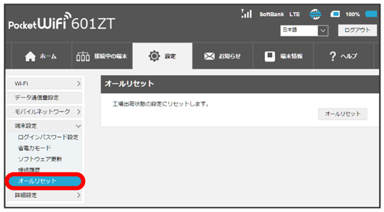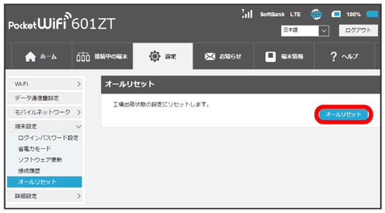 - USIMカードの内容を除き、本体設定がすべてお買い上げ時の状態に戻りますので、ご注意ください。