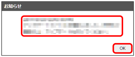 ポップアップ画面でお知らせの内容が表示されます。