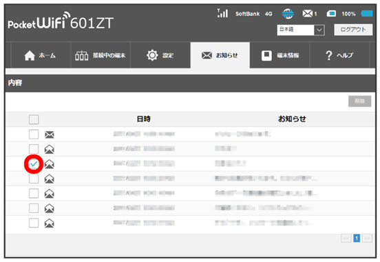 お知らせを選択して削除する