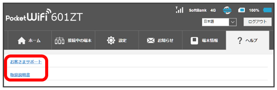 お客様サポート、取扱説明書のサポートサイトを表示します。