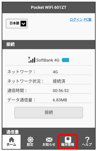 端末情報が表示されます。