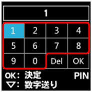 PINコードやPINロック解除コードなどの入力時には、数字キーボードが表示されます。