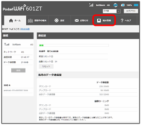 本機のソフトウェアバージョンなど、次の各種情報を確認できます。