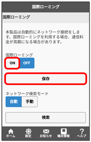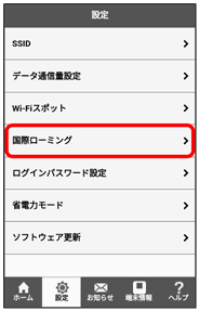 海外でご利用になる場合は、国際ローミングをONに設定します。