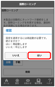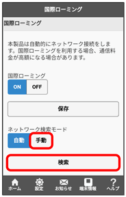 国際ローミング中は、モバイルネットワークを手動で検索して、ネットワークを設定できます。日本国内では、自動モードのみご利用になれます。設定の変更はできません。
