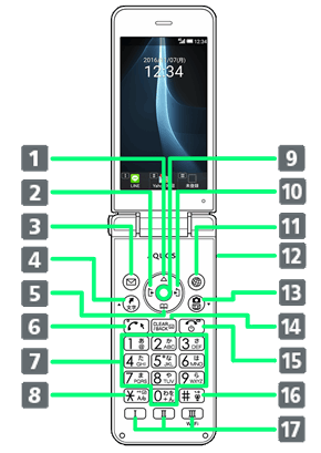 開いた状態です。ボタン操作や通話をするときは、この状態にしてください。