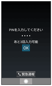 PINコードを操作するときや、USIMカードロック設定時に電源を入れたときは、PINコードの入力が必要になります。