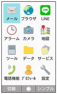 待受/メニューアプリが切り替わります。