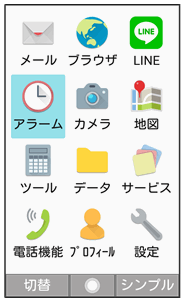 アラームメニューが表示されます。