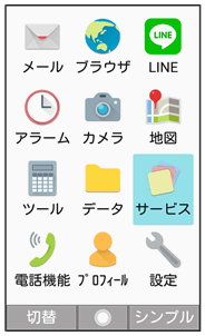 | サービス | あんしんバックアップや緊急速報メールなどのサービスを利用できます。 サービスの使いかたについて詳しくは、「サービスメニューを利用する」を参照してください。 |