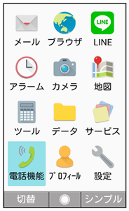 | 電話機能 | 電話帳や簡易留守録再生、スピードダイヤルなど電話の機能が利用できます。 電話機能の使いかたについて詳しくは、「電話機能メニューを利用する」を参照してください。 |