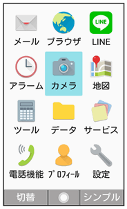 | カメラ | カメラを使って静止画や動画の撮影などができます。 カメラの使いかたについて詳しくは、「カメラメニューを利用する」を参照してください。 |