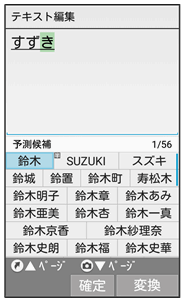 漢字(ひらがな)入力モードで、「すずき」と入力する方法を例に説明します。