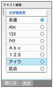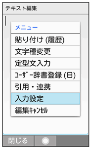 | 入力補助・変換 | 予測変換、自動カーソル移動などを設定できます。 | |