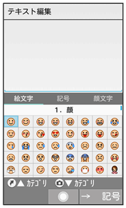 絵文字/記号/顔文字の入力画面(履歴があるときは、入力履歴画面)が表示されます。