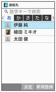 スピードダイヤル一覧画面で登録済みの番号を選択