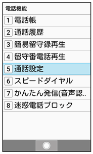 通話に関する設定が変更できます。設定できる項目は次のとおりです。