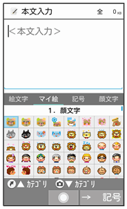 マイ絵文字の入力画面(履歴があるときは入力履歴画面)が表示されます。