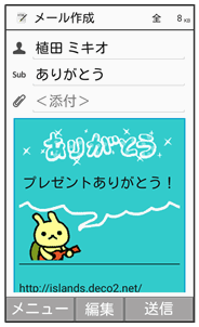 メールを装飾します。ここでは文字サイズを変更/画像を挿入/文字を左右に移動表示(スクロール)の内容を例に説明します。