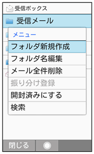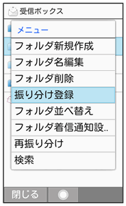 相手のメールアドレスや、件名などによって、自動的にメールをフォルダに振り分けることができます。ここでは電話帳に登録している差出人を指定してメールを振り分ける方法を例に説明します。