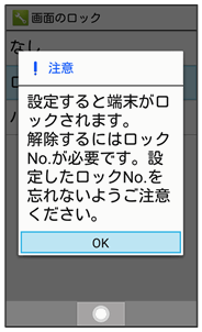 画面ロック解除に設定したロックNo./パスワードはメモに控えるなどして、お忘れにならないようご注意ください。お忘れになった場合は、最寄りのワイモバイルショップにて所定の手続きが必要となります。その際、お客様が登録/設定した内容が消失しますのでご了承ください。