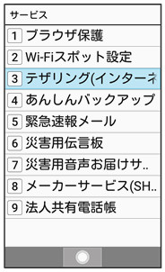 | Wi-Fiテザリングを設定 | ネットワーク名やセキュリティなど、Wi-Fiテザリングを利用する際の設定を行います。 | |