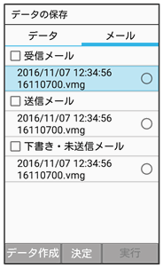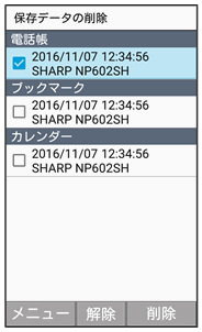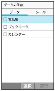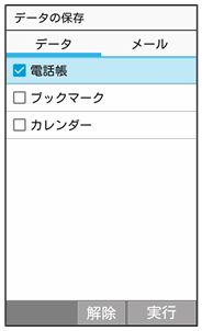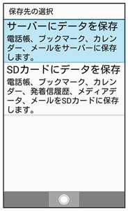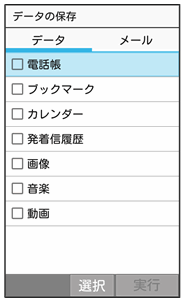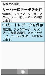 本体の電話帳データ/ブックマークデータ/カレンダーデータ/発着信履歴データ/画像データ/音楽データ/動画データを、サーバー/SDカードなどに保存します。