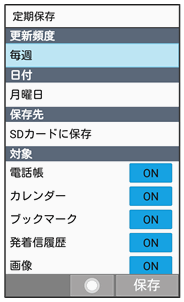 本体の電話帳データ/ブックマークデータ/カレンダーデータ/発着信履歴データ/画像データ/音楽データ/動画データを、サーバー/SDカードなどに定期的に自動で保存します。